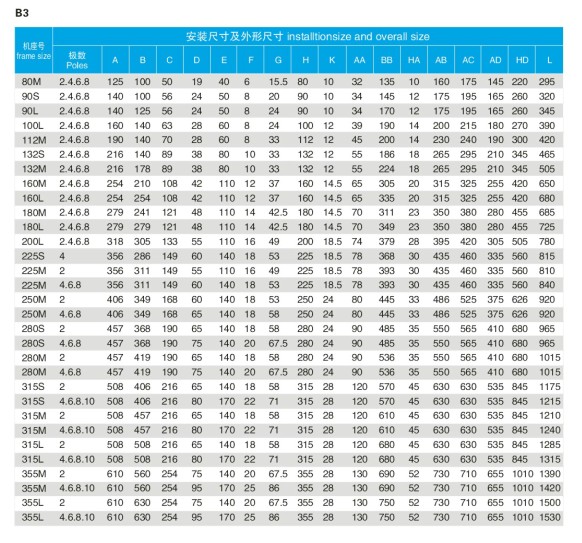 | YX3-355M-2 | 250 | 95.8 | YX3-315L2-4 | 200 | 95.4 | YX3-355L-6 | 250 | 95.0 |