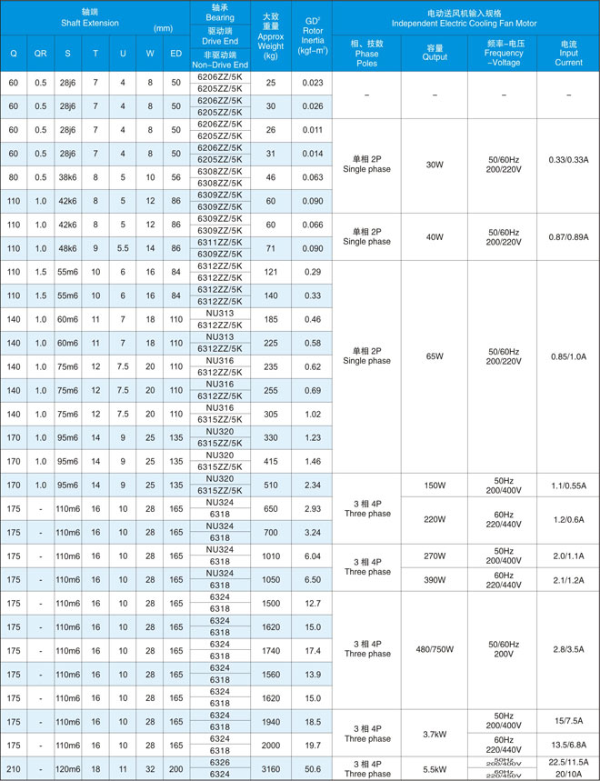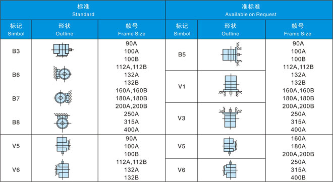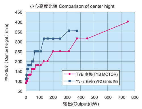 在同一輸出下中心高度比本公司YVF2系列變頻器專用IM下降2格。另外,電機重量也有大幅度減輕。(與本公司YVF2系列變壓器專用IM相比減輕32-57%)