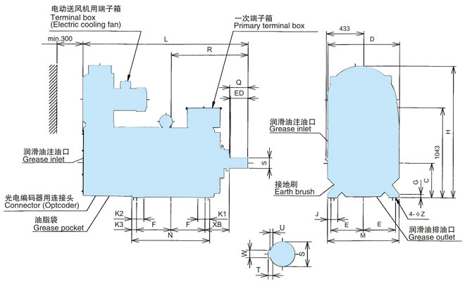 注3) 375kW及450kW基底速度1500 min-1的電機轉(zhuǎn)速范圍為1800~1500 min-1。而且,450kW基底速度1200 min-1的電機轉(zhuǎn)速范圍為1500-1200 min-1(★標記)。