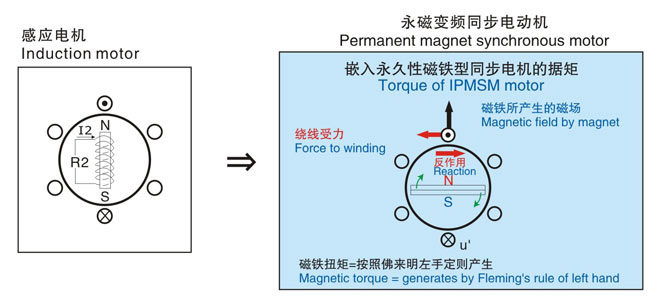 其構(gòu)造為內(nèi)嵌永久性磁鐵,無二次繞線,所以可將其損失控制在較低水平。