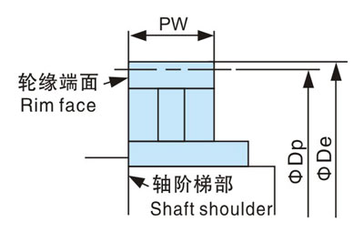 為了減小電機輸出軸上的載荷,安裝時請按照下圖安裝,使V滑輪的輪緣端面與軸階梯部在同一平面。
