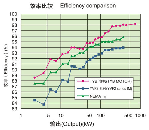 效率比高效電機NEMA標準值約提高3%左右,比本公司YVF2系列變頻器專用IM約提高5%左右。