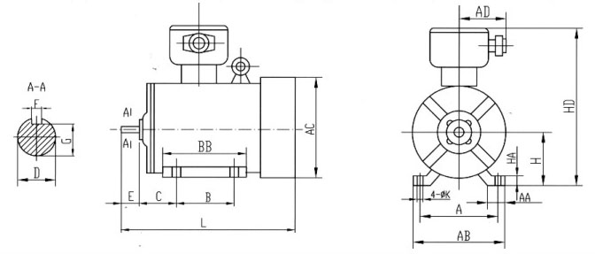 YBX3防爆電機(jī)B5安裝方式對應(yīng)圖表